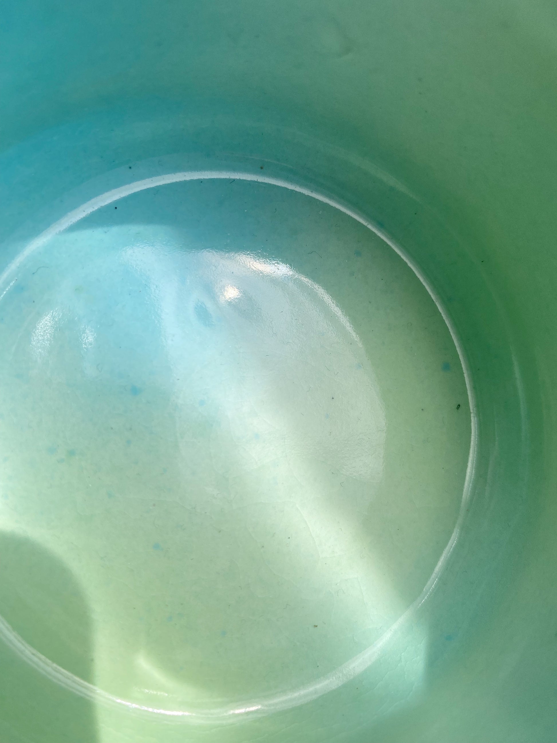 Handmade ceramic airbrushed with a blue and green gradient. Can be used as a planter or small bowl. Note that parts of the clear glaze are cracked (please refer to photos)
