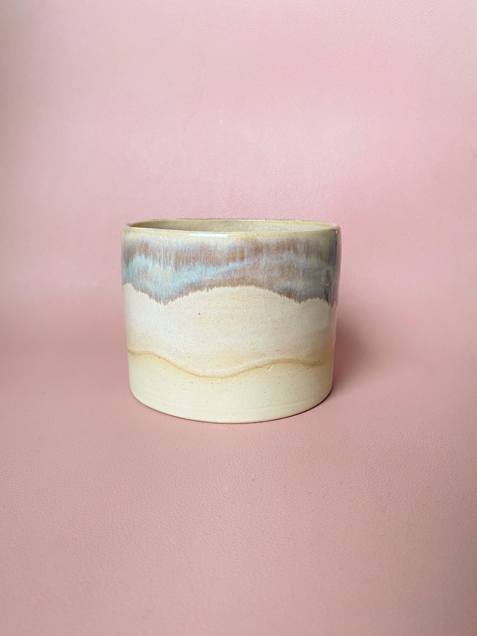 Handmade speckled planter with a blue grey gradient glaze. Perfect for a small plant or can also be used as a fruit bowl or cup.