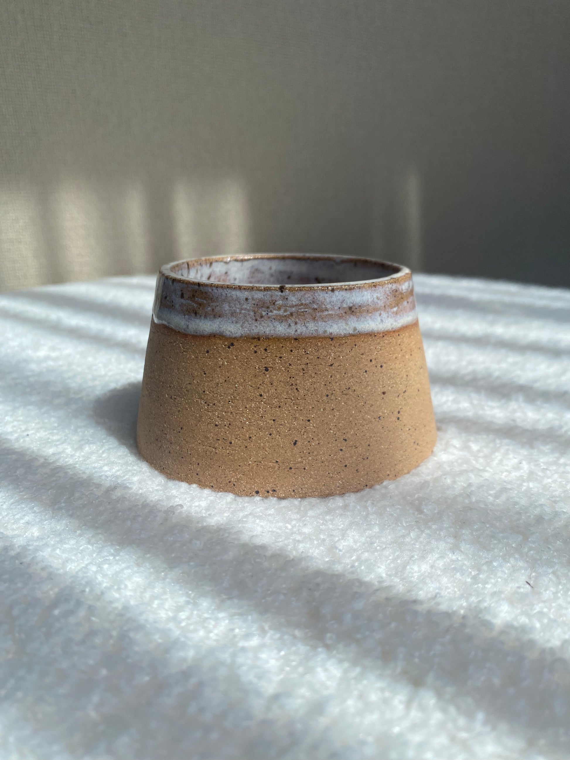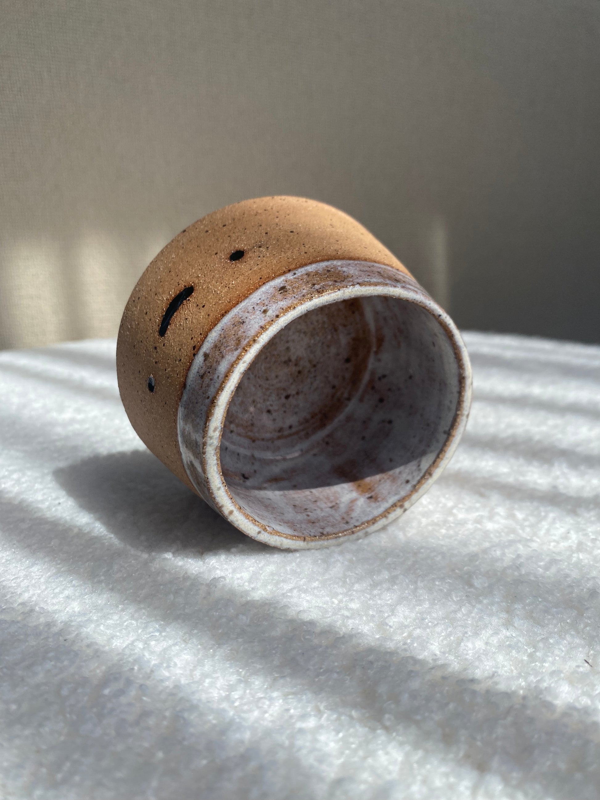 Handmade happy volcano with a drippy white glaze. Can be used as a planter or trinket holder.